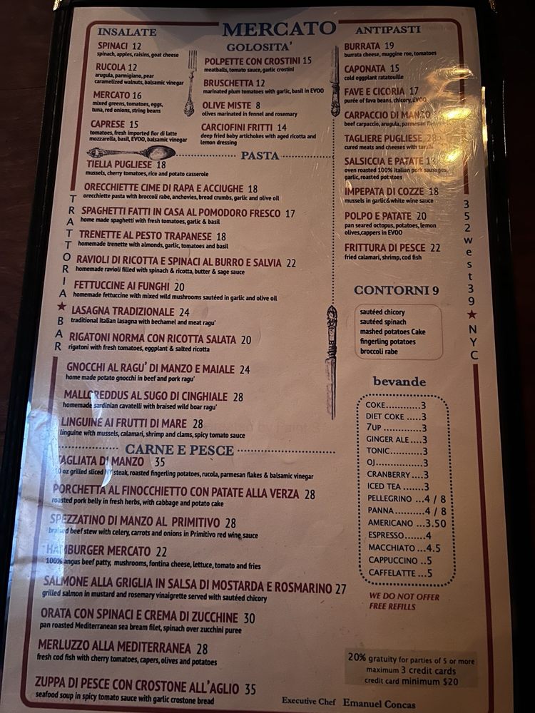 Mercato, located in the bustling Garment District of New York City, is a hidden gem offering a blend of Italian cuisine and cocktail bar ambiance. This cozy and warm restaurant boasts attentive staff and a menu filled with simple yet complex flavors. From appetizers like carpaccio and grilled octopus to delectable pasta dishes and decadent desserts like tiramisu, Mercato delivers on all fronts. The handcrafted pasta is a standout, with options like malloreddus al sugo di cinghiale showcasing a perfect balance of flavors. The cozy setting, friendly service, and delicious food make Mercato a must-visit for those seeking an authentic Italian dining experience. The Michelin-starred restaurant's menu offers a variety of options, including vegan choices, making it a versatile and fulfilling dining destination. Don't miss out on the opportunity to savor the flavors of Mercato on your next visit to New York City.